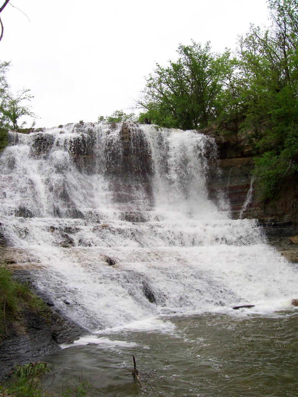 This waterfall is actually the spillway of Geary State Fishing Lake. Only in times of excess rain fall does it flow this well.
