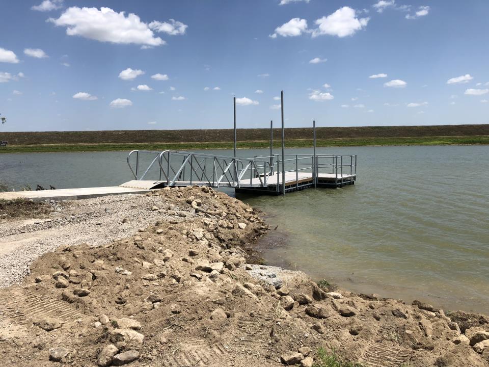 Fishing opportunities at Goodman are great with the potential to catch largemouth bass, channel catfish, bluegill, and redear. Because of water level conditions largemouth bass and channel catfish growth fluctuate but are generally in good condition. However, the bluegill and redear enthusiasts should have no trouble catching a nice stringer of panfish. The lake is currently full. 10/9/2018. In 2018 a the old courtesy dock was replaced with a new one.