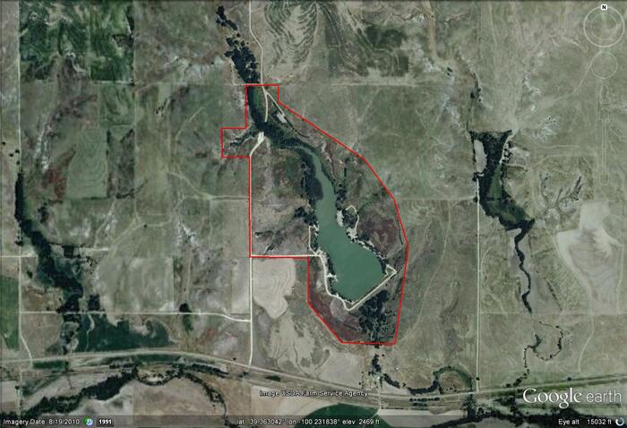 The area is located 12 miles east of Hoxie, just one mile north of Highway 24. The lake covers 50 acres and is surrounded by a 216-acre timber and native grass wildlife area.