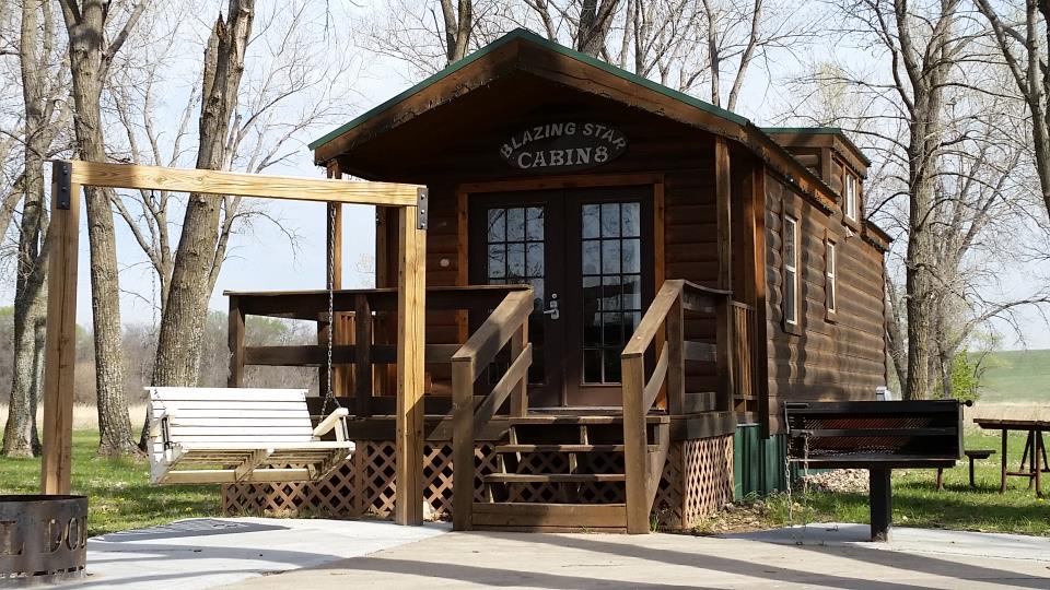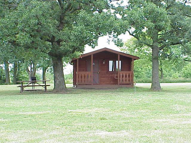 Full bed & set of bunk beds, electricity/heat/air conditioner, water hydrant-outside, table, 4 chairs, picnic table, fire ring, and barbeque grill. A porch swing is located on the porch of each cabin.