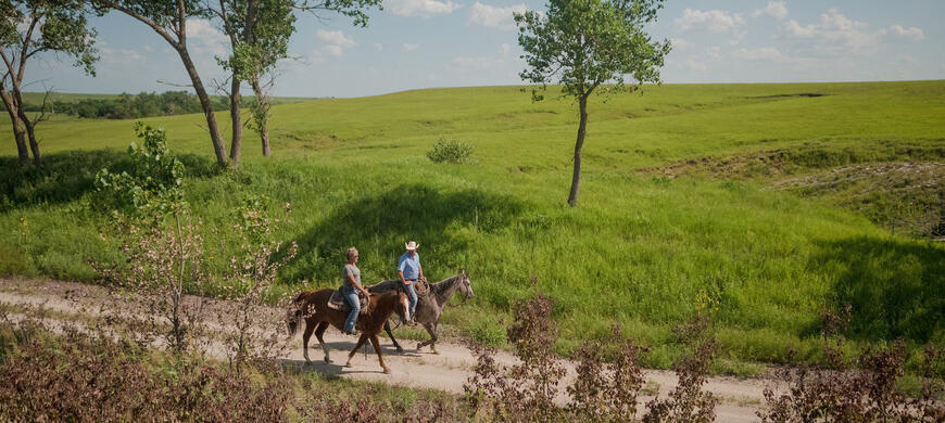Several segments of the trail are unimproved or closed, but long-range plans call for it to be improved along its entire length. Improvements will be completed in segments as funds become available. Developing the trail will encourage outdoor recreation and provide safer routes for pedestrians, bicyclists and equestrians. Learn more about the Flint Hills Trail Improvements.