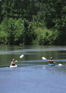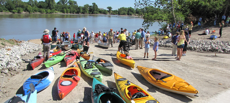 The Kansas River is accessible from a boat ramp and parking area. This river access is available for canoes, kayaks, and other small craft. Two miles downstream is Portage Park, which provides a portage around the city water wier (low-head dam). Learn about river conditions and know your skill level and abilities before entering the water.