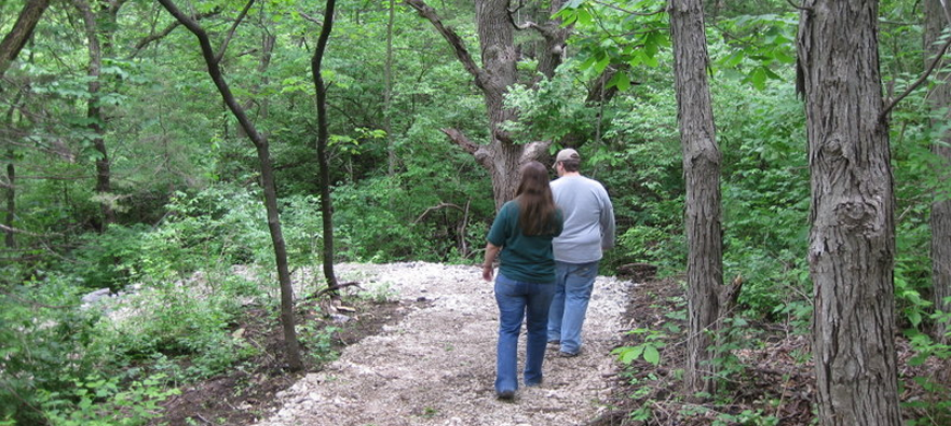 Forested trails and access to the Kansas (Kaw) River sets Kaw River State Park apart from other state parks. Hiking and mountain-biking trails wind through an extensive oak-hickory forest on steep slopes with good views. The park property presently consists of 76 acres of land on the south bank of the Kansas River in west Topeka, and it is adjacent to MacLennan Park and Cedar Crest (the Kansas Governor’s residence) to the east. The Kansas Department of Wildlife and Parks Region 2 Office is also adjacent to the park property. Additional property west of the Region Office building will also include public access for trails. Kaw River State Park is the only free state park in Kansas.
