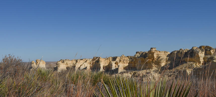 Little Jerusalem Badlands State Park is a unique, vital habitat for a variety of wildlife and plants. Ferruginous hawks nest here and rock wrens and Says’ phoebes, common in arid parts of the western U.S., keep an eye out for insects. Sharp-eyed visitors will occasionally spot small mammals, bats, lizards, snakes, toads and a variety of insects. Great Plains wild buckwheat grows only in the chalk prairies of western Kansas and the single largest population of this endemic plant is found at Little Jerusalem.
