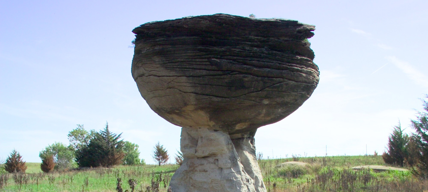 One of the 8 Wonders of Kansas Geography, Mushroom Rock is the smallest, but one of the most unique, state parks in Kansas. The park is only 5 acres but boasts some of the most unusual rock formations anywhere. The rocks served as meeting places and landmarks for Native Americans and early pioneers such as John C. Fremont and Kit Carson.
