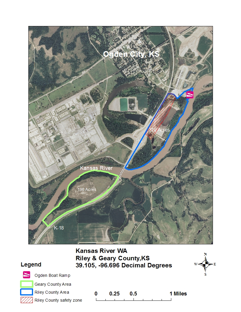 The K-18/Ogden Wildlife Area is located off Kansas Highway 18 directly adjacent to the Kansas River. These areas are limited to shotgun and archery hunting only. No firearm deer hunting is allowed.