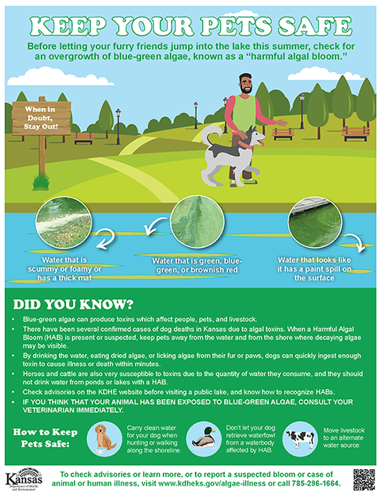 The Kansas Department of Wildlife & Parks (KDWP); the U.S. Army Corps of Engineers and the Bureau of Reclamation cooperate with KDHE when a Watch or Warning is issued to alert the public about potentially harmful algae blooms.