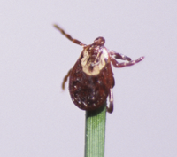 Check yourself at least every two hours for ticks when outside for extended periods of time. Pay special attention to areas in and around your hair, ears, armpits, groin, navel and backs of the knees. Promptly remove a tick if one is found. The sooner a tick is removed, the less chance it will transmit a disease to its host. If you find a tick, grasp the tick with tweezers as close to the skin as possible and slowly pull it straight out. Do not crush or puncture the tick and try to avoid touching the tick with your bare hands. Thoroughly disinfect the bite area and wash your hands immediately after removal. Be sure to also examine pets and gear, as ticks can ride into the home on animals, coats, backpacks and blankets, etc.