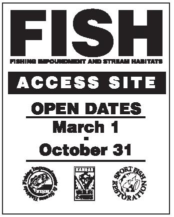 Special regulations are in place for the public that access WIFA properties and KDWPT officials periodically patrol the areas. Violators will be ticketed or arrested for vandalism, littering or failing to comply with fishing regulations. Access is limited to foot traffic, except on roads designated by the landowner in the case of very large tracts of land. Additionally, under this program some landowners are eligible for fish stocking, habitat management, fence crossers, cattle guards, rock boat ramps, or rocked parking areas.