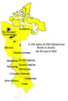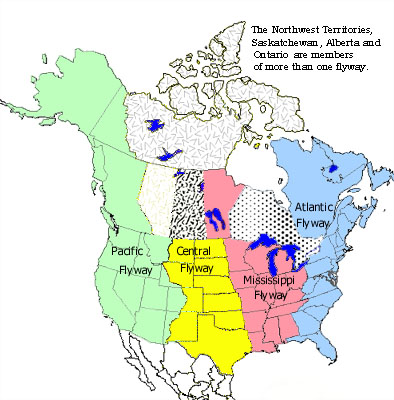 Kansas is located within the Central Flyway, which is composed of ten states including Montana and North Dakota to the north, extending south through Texas and New Mexico. Only that area of the West Tier states east of the Continental Divide is currently included within the Central Flyway boundaries. Although the basic responsibility for the management of waterfowl rests with the Federal Government, the states must be involved. In order to transcend state borders, the ten Central Flyway states have joined administratively and formed the Central Flyway Council. The directors of the state fish and game agencies of the flyway states, or their designated representatives, constitute the official voting members of the Council. Delegates from the Canadian provinces participate in Council activities, but do not vote on regulatory recommendations. The Council provides an excellent forum for communication and understanding the problems throughout the flyway and attacking these problems in a cooperative, scientific way. Much of the information needed for the management of ducks is continuously being obtained through banding, survey, and research efforts, planned and conducted by the Flyway Council and the U.S. Fish and Wildlife Service.