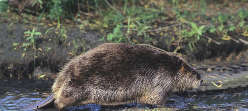 Noted as the largest rodent in North America, beavers commonly weigh 40-60 pounds and have been known to reach weights of nearly 100 pounds. The beaver is the most specialized of all rodents for life in the water. Its flat, leathery tail and large, webbed hind feet are perfectly suited for swimming, and membranes in the ears and nose close while underwater. The beaver's dense, tan to chocolate brown fur traps air to keep water off its skin, providing insulation from near-freezing water temperatures during cold winter months.