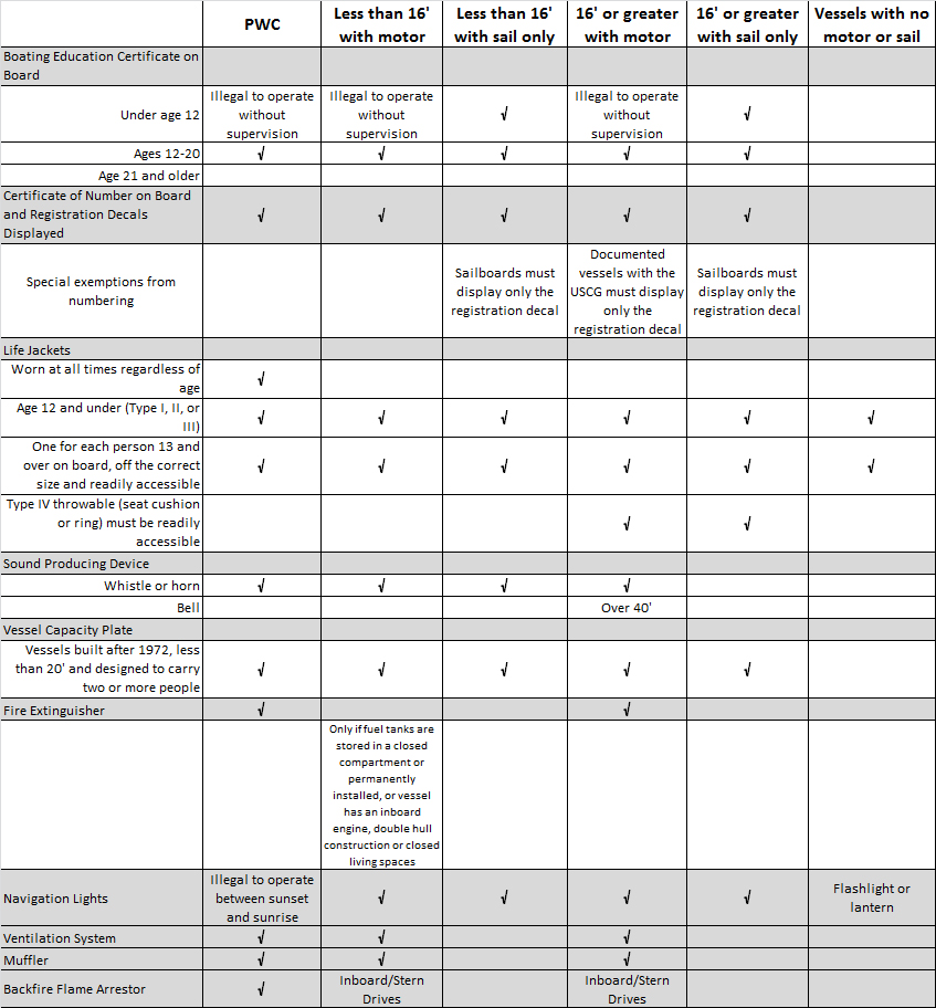 Making sure you have all the required equipment on your boat before you hit the water makes good sense.